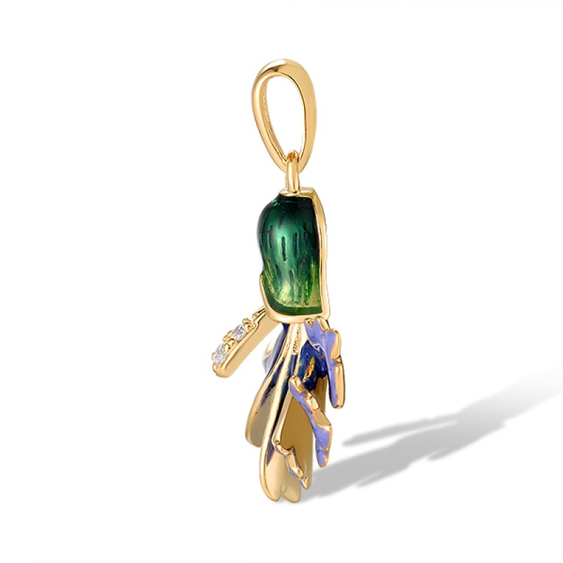 Sterling Silver w/ Yellow Plating Pendant Enamel,White Cubic Zirconia (P318618ENASY925)