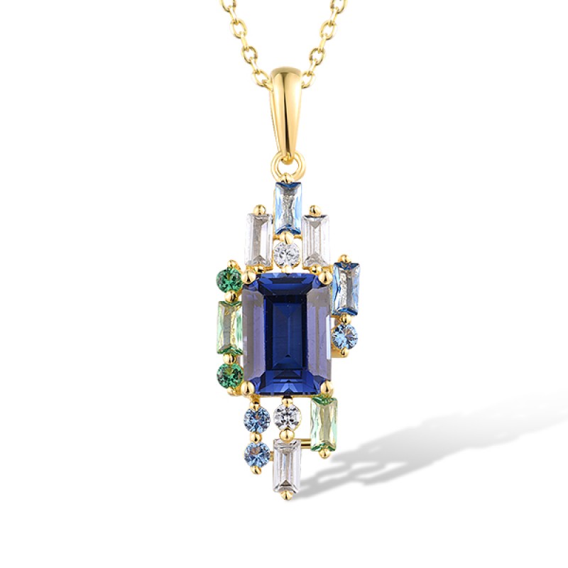 Sterling Silver w/ Yellow Plating Pendant Green Spinel,White Cubic Zirconia,Blue Spinel,Created Sapphire (P318732MULSY925)