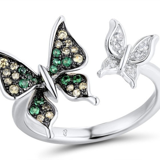 SL925 w/Black plating Multi Colour Stone Ring