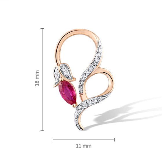 Red Heart 14K 585 Rose Gold Pendant Diamond,Ruby without chain (P304627RUY14KRW)