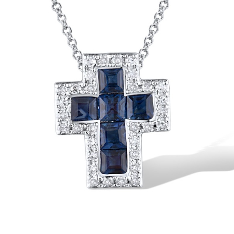 14KW Pendant Blue Sapphire,Diamond without chain (P319063SAP14KW)