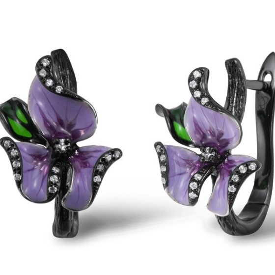 Sterling Silver w/ Black Plating Earrings Enamel,White Cubic Zirconia (E304020ENASB925)