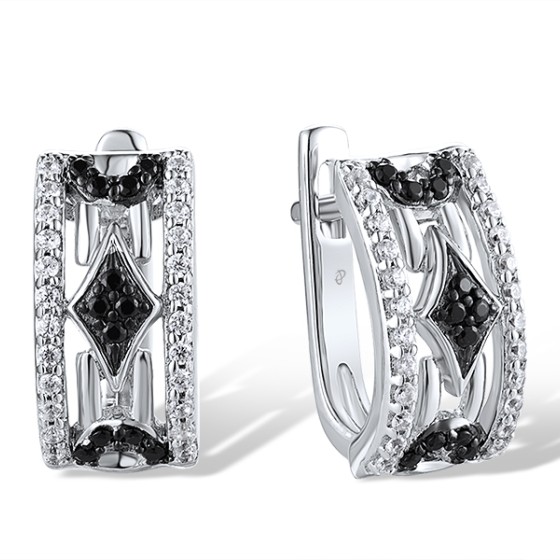 Sterling Silver Earrings Black spinel,White Cubic Zirconia (E306650BSNZSL925)