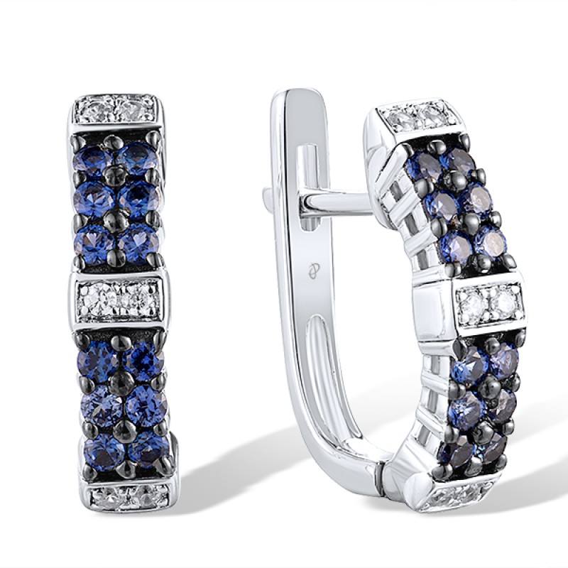 Sterling Silver w/ Black White Plating Earrings Blue Nano Cubic Zirconia,White Cubic Zirconia (E306862CRSZSK925)