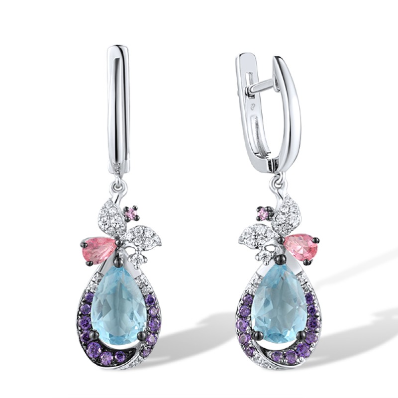 Sterling Silver w/ Black White Plating Earrings White Cubic Zirconia,Blue Glass,Created Pink Sapphire,Pink Glass,Amethyst Cubic Zirconia (E307433MULSK925)