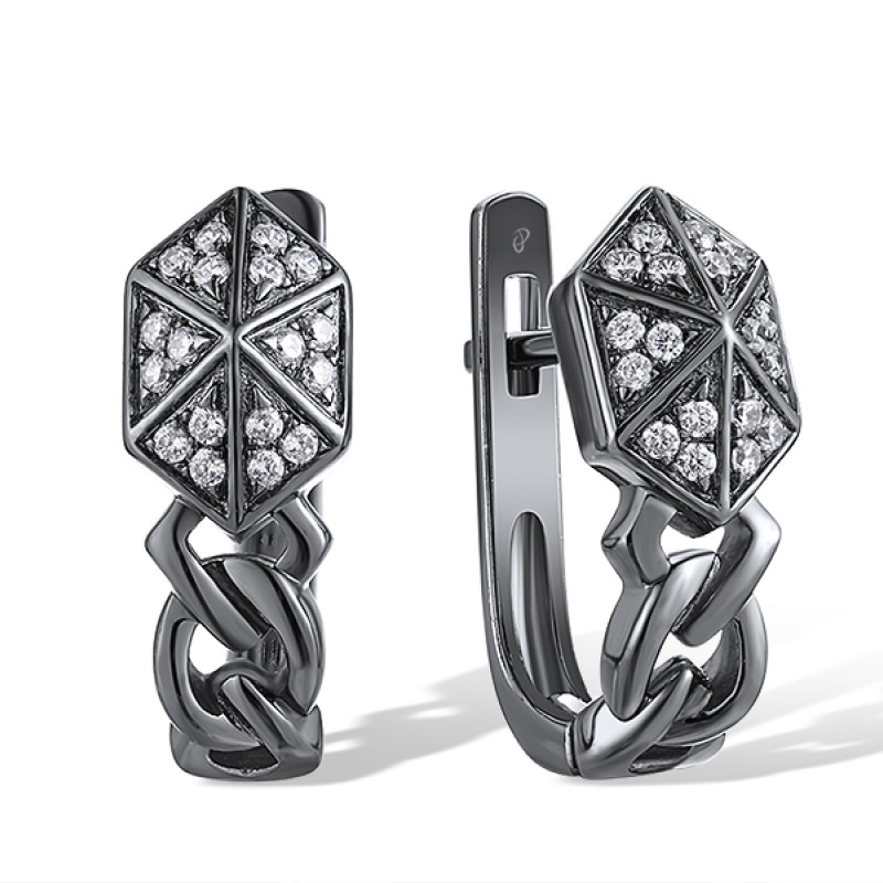 Sterling Silver w/ Black Plating Earrings White Cubic Zirconia (E309117WCZSB925)