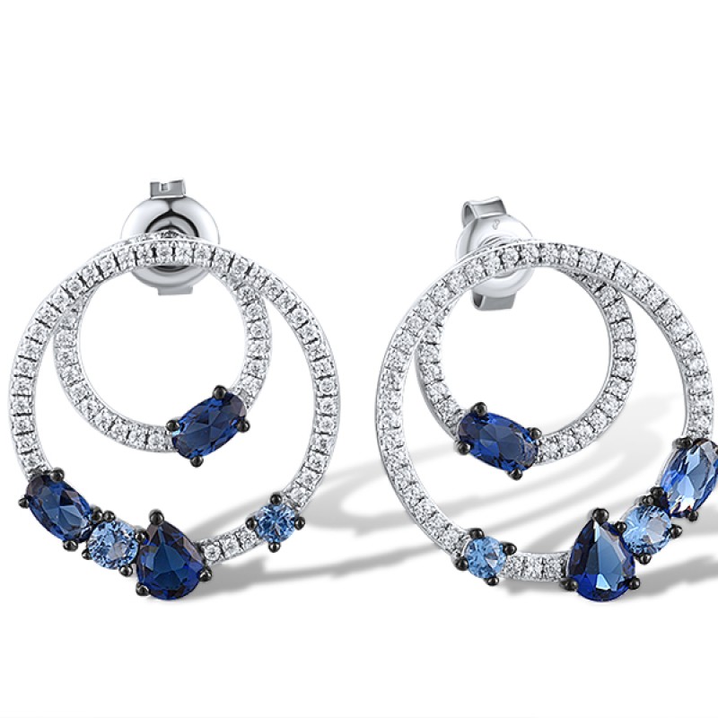 Sterling Silver w/ Black White Plating Earrings White Cubic Zirconia,Blue Glass,Blue Spinel (E311644BGNZSK925)