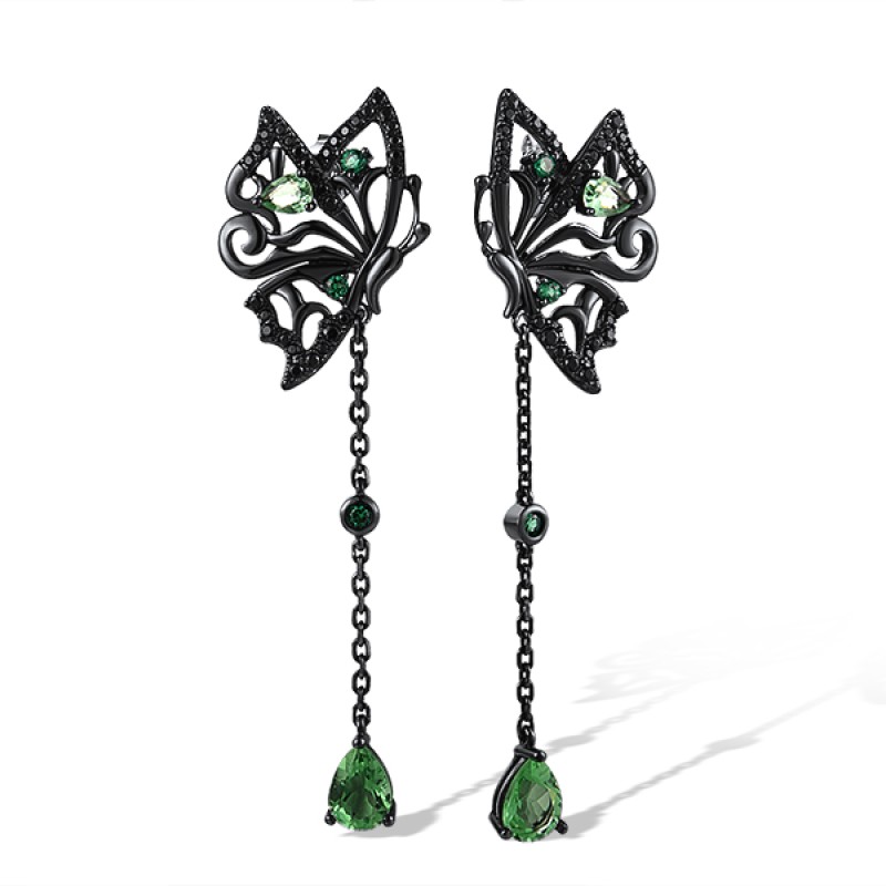 Sterling Silver w/ Black White Plating Earrings Black spinel,Green Glass,Green Spinel (E311889BGGSSK925)