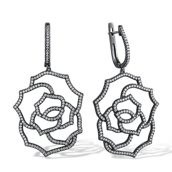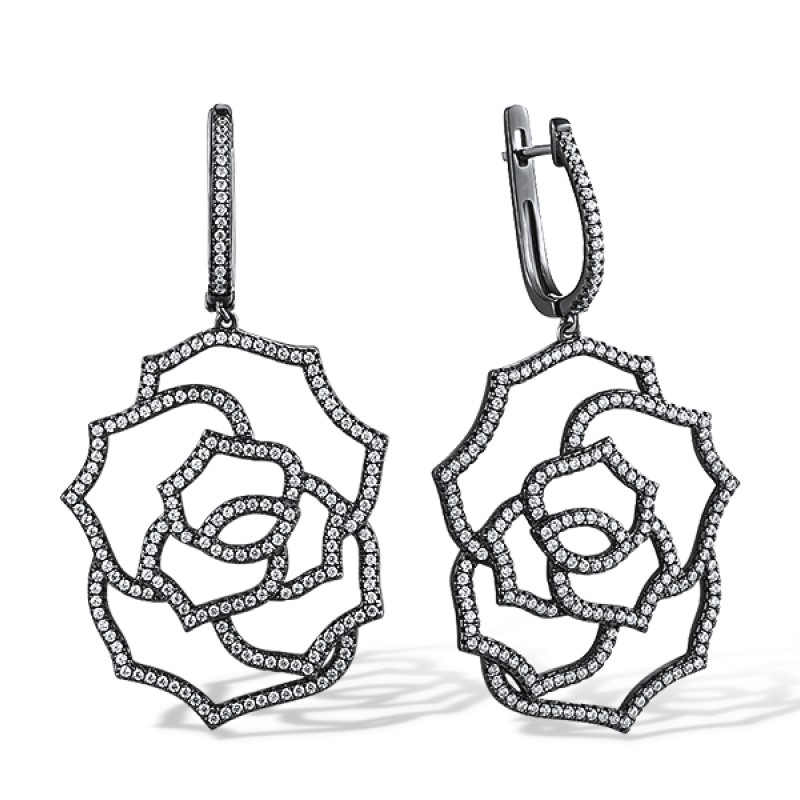 Sterling Silver w/ Black White Plating Earrings White Cubic Zirconia (E312201WCZSK925)
