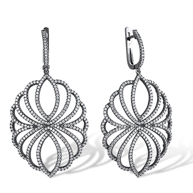 Sterling Silver w/ Black White Plating Earrings White Cubic Zirconia (E312214WCZSK925)