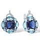 Sterling Silver w/ Black White Plating Earrings Blue Glass,Created Sapphire,White Cubic Zirconia (E312455CSBZSK925)