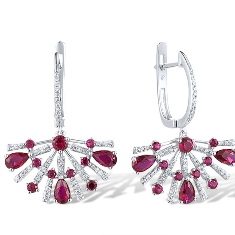 Sterling Silver Earrings Created Ruby,White Cubic Zirconia (E316198CRZSL925)