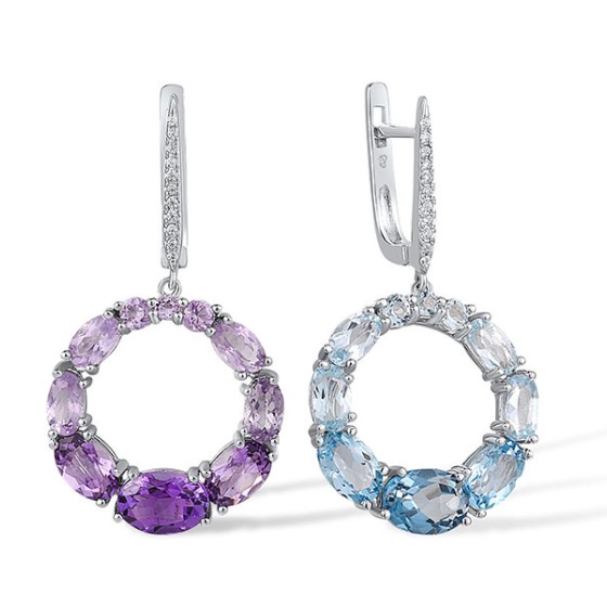 Sterling Silver Earrings Amethyst,White Cubic Zirconia,Blue Topaz (Sky Blue),Blue Topaz (Swiss Blue),London Blue Topaz (E317536MULSL925)