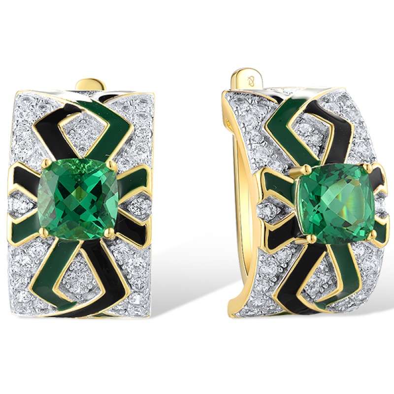 - Enamel,Green Spinel 2pc 2.400ct ,White Cubic Zirconia 68pc 1.292ct