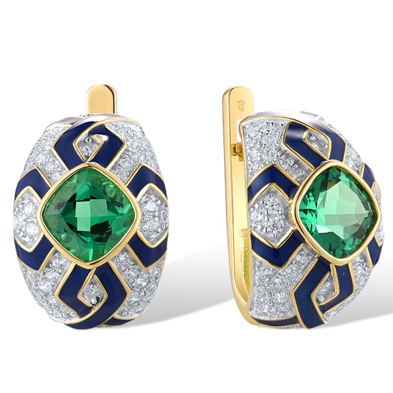 Sterling Silver w/ Ionic Yellow Plating Earrings Green Spinel,White Cubic Zirconia,Enamel (E318373ENASP925)