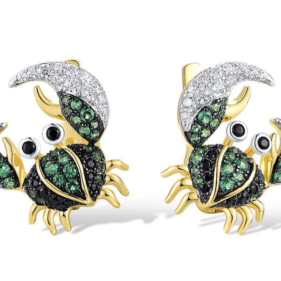 Sterling Silver w/ Yellow Black White Plating Earrings Green Spinel,White Cubic Zirconia,Black spinel (E318805BGSZSZ925)