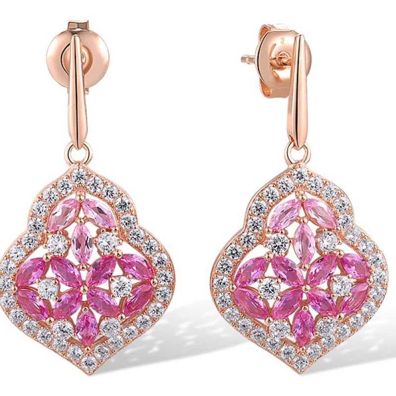 Sterling Silver w/ Rose Plating Earrings Created Pink Sapphire,White Cubic Zirconia (E318878CPSZSR925)