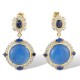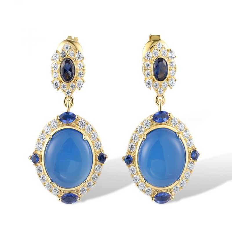 Sterling Silver w/ Yellow Plating Earrings Blue Nano Cubic Zirconia,Dyed Blue Agate,White Cubic Zirconia (E319023BDBZSY925)