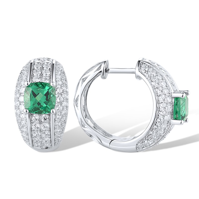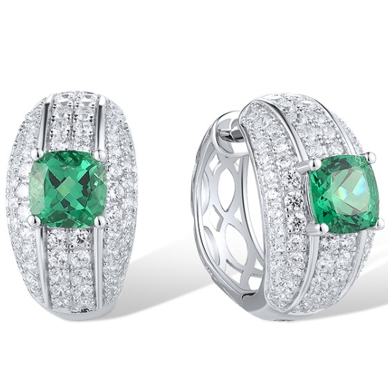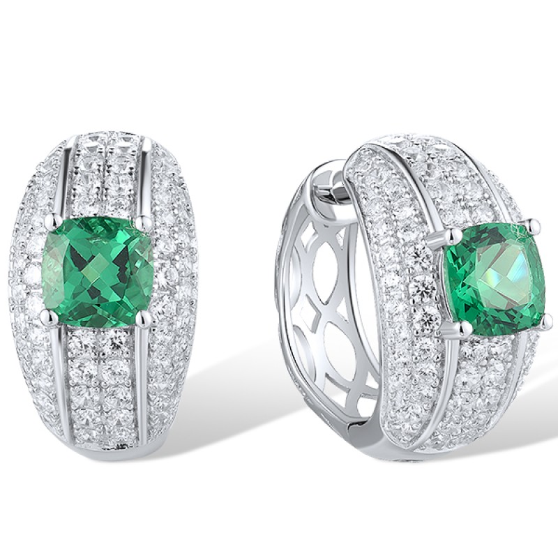 Sterling Silver Earrings Green Spinel,White Cubic Zirconia (E319058GSZSL925)