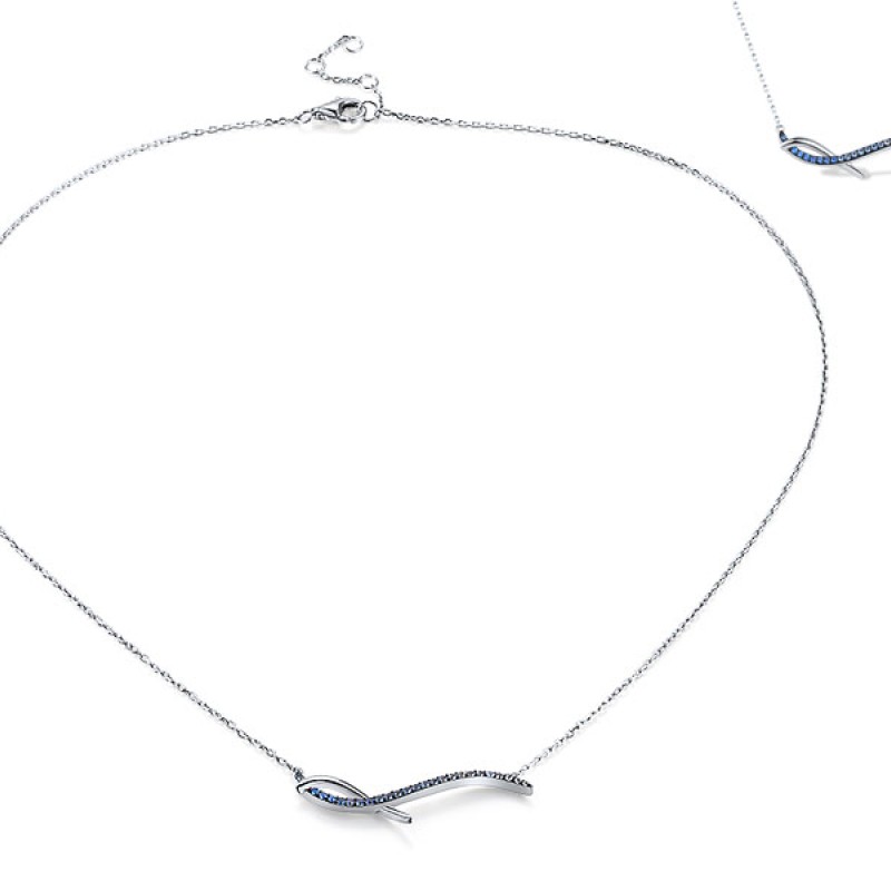 Sterling Silver w/ Black White Plating Necklace Blue Spinel,White Cubic Zirconia (N316729BLZSK925)