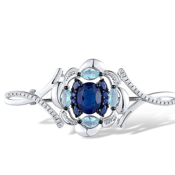 Sterling Silver w/ Black White Plating Brooch White Cubic Zirconia,Blue Glass,Created Sapphire (O312635CSBZSK925)