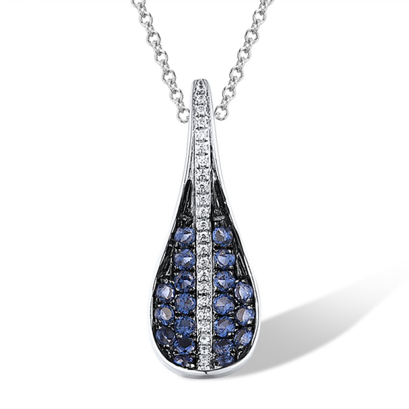Sterling Silver w/ Black White Plating Pendant Blue Nano Cubic Zirconia,White Cubic Zirconia (P308284BZZSK925)