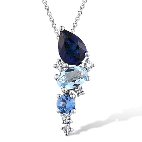 Sterling Silver Pendant Blue Glass,Blue Spinel,White Cubic Zirconia (P310916BGNZSL925)