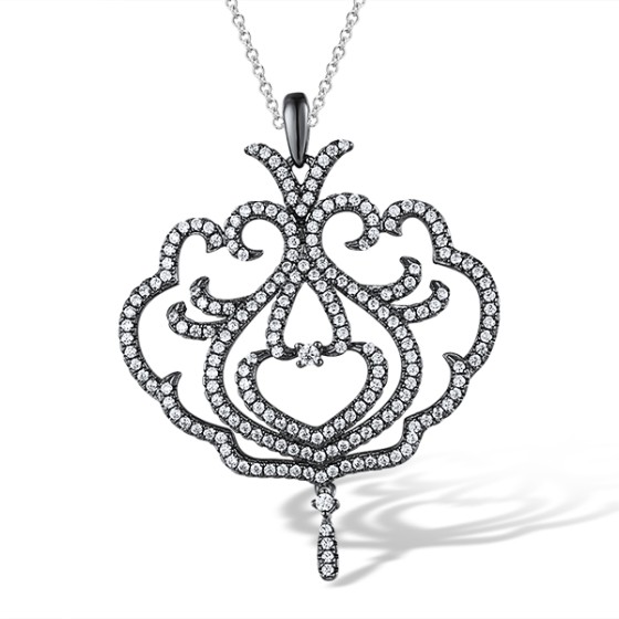 Sterling Silver w/ Black Plating Pendant White Cubic Zirconia (P312213WCZSB925)