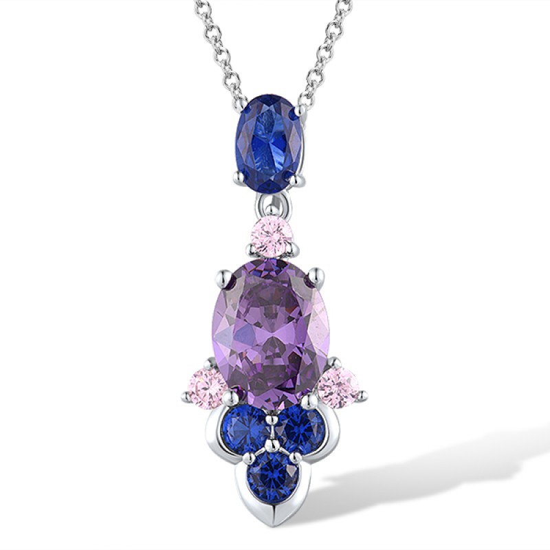 Sterling Silver Pendant Pink Cubic Zirconia,Amethyst Cubic Zirconia,Blue Nano Cubic Zirconia (P313686SBAPZSL925)