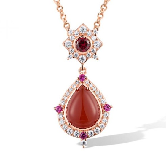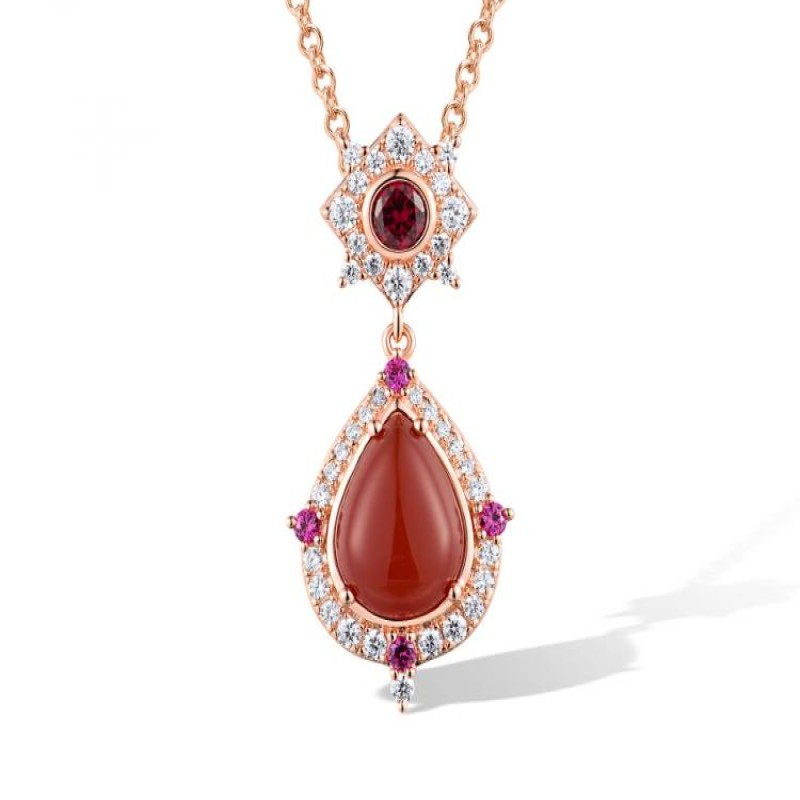 Sterling Silver w/ Rose Plating Pendant Created Ruby,Dyed Red Agate,White Cubic Zirconia (P318669RARZSR925)