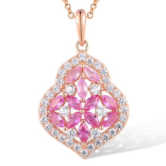 Sterling Silver w/ Rose Plating Pendant Created Pink Sapphire,White Cubic Zirconia (P318878CPSZSR925)