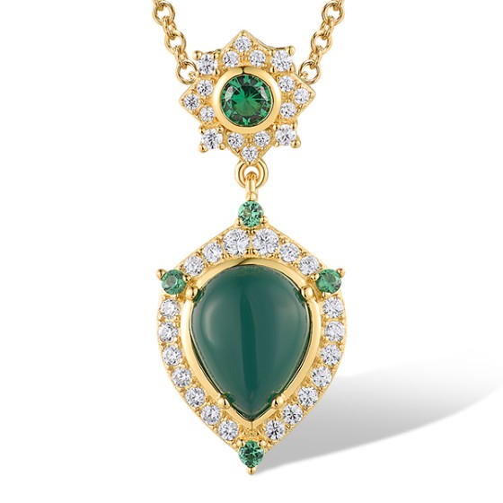 Sterling Silver w/ Yellow Plating Pendant White Cubic Zirconia,Dyed Green Agate,Green Spinel (P319021GSGZSY925)