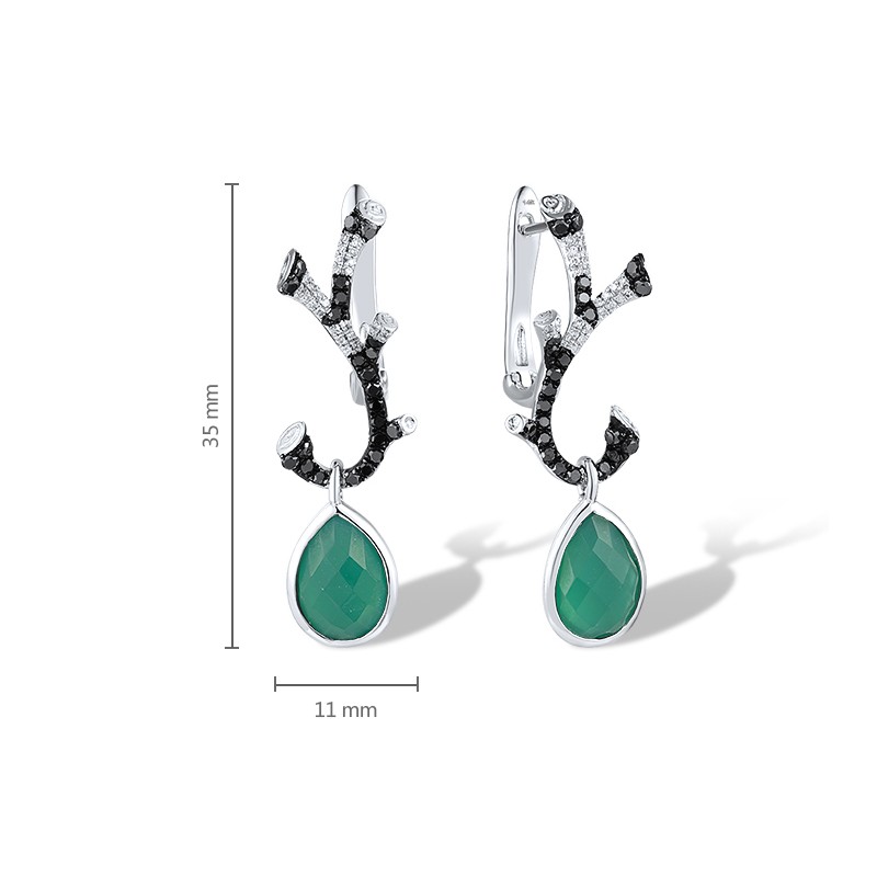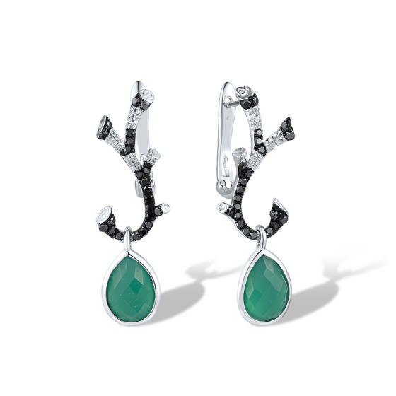 14KWB Earrings Black Diamond,Diamond,Dyed Green Agate (E304163BGA14KWB)