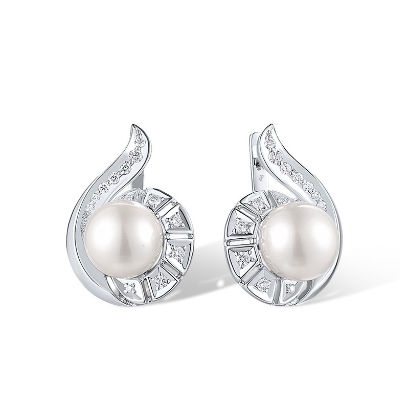 14KW Earrings Diamond,Fresh Water White Pearl (E312636FWP14KW)