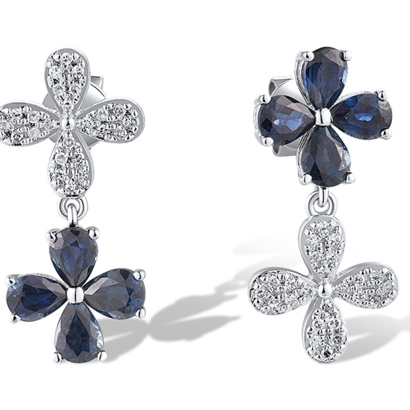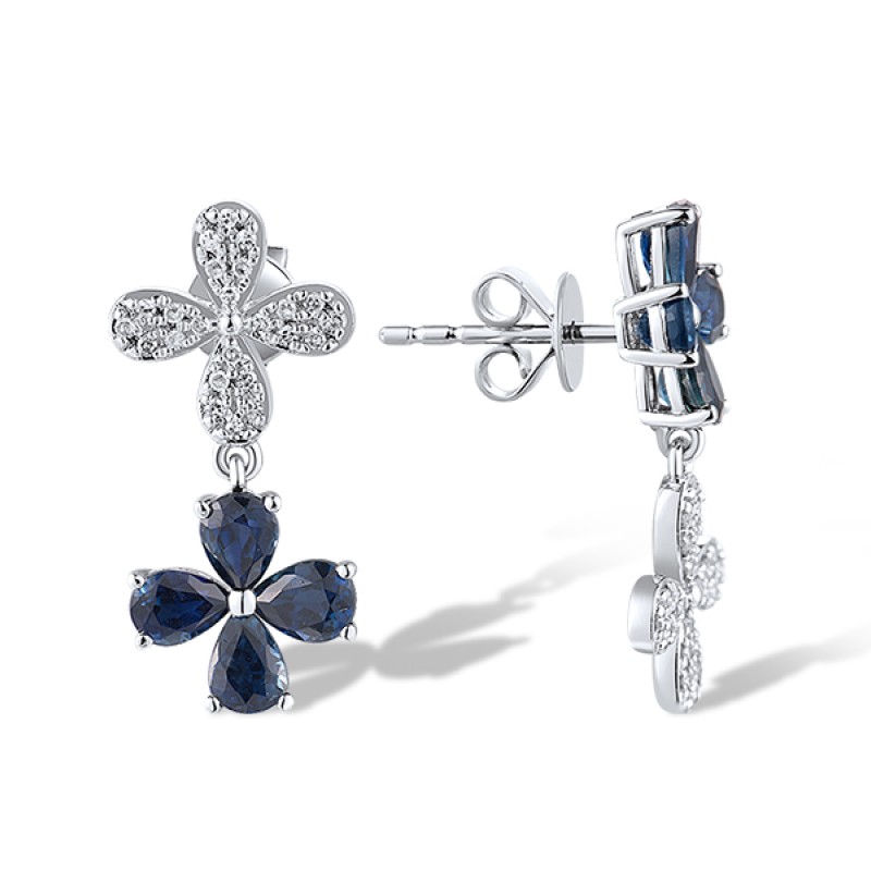 14KW Earrings Diamond,Blue Sapphire (E319081SAP14KW)