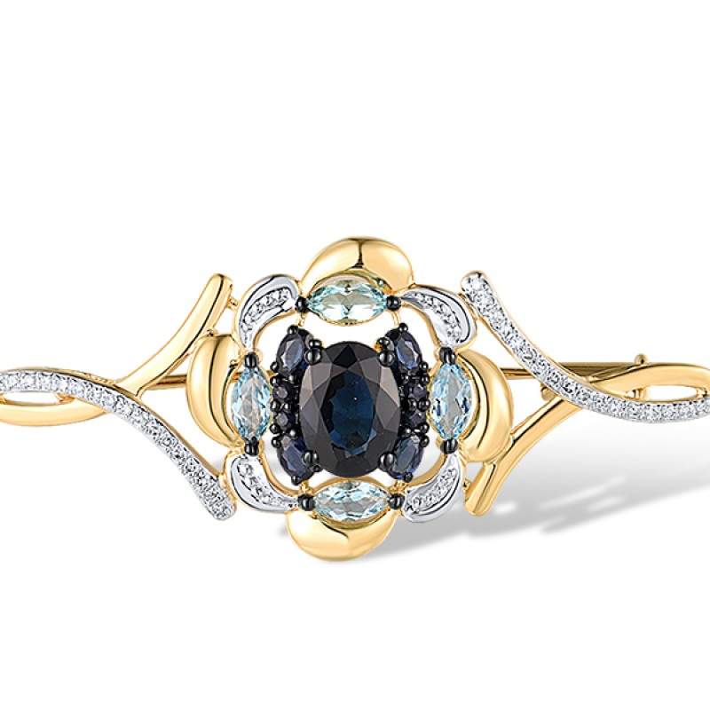 14KYWB Brooch Diamond,Blue Sapphire,Blue Topaz (Swiss Blue) (O312635BTS14KYWB)