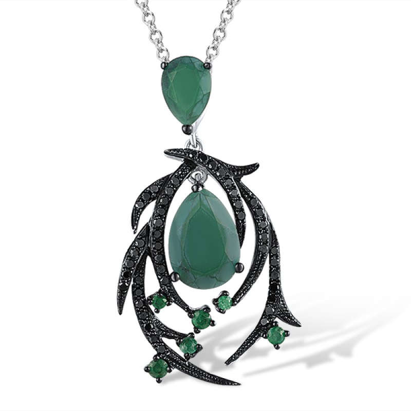 14KWB Pendant Black Diamond,Dyed Green Agate,Emerald (P304150EGBD14KWB)