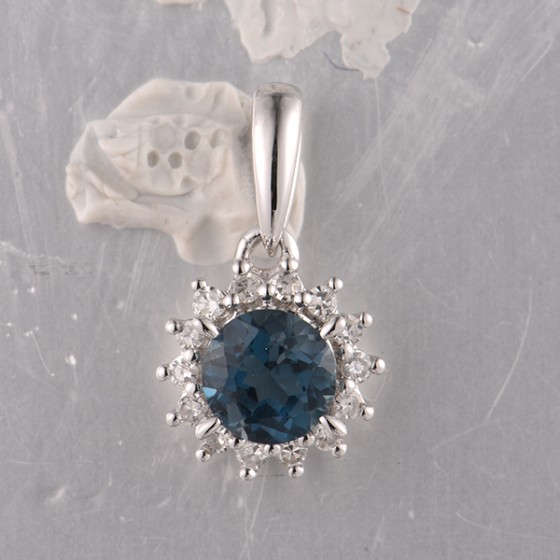 14KW Pendant Diamond,London Blue Topaz (P313866ALDB14KW)
