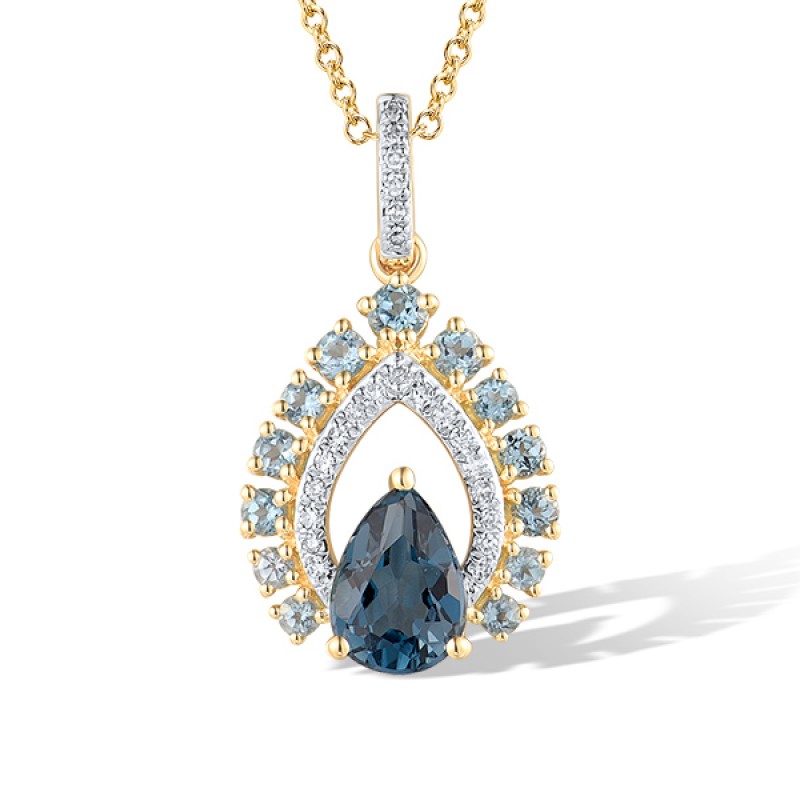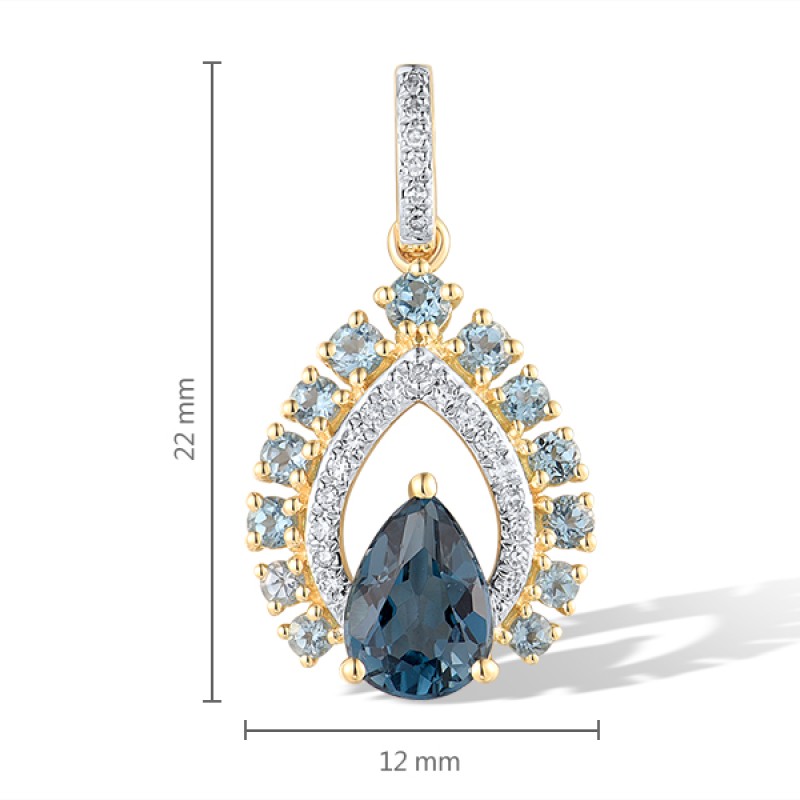 14KYW Pendant Blue Topaz (Swiss Blue),Diamond,London Blue Topaz without chain (P318219BLL14KYW)