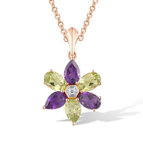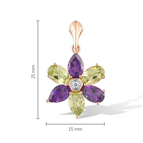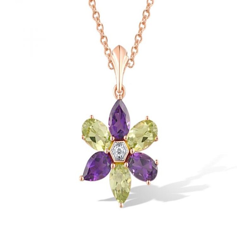14KRW Pendant Amethyst,Diamond,Peridot without chain (P319114AMP14KRW)