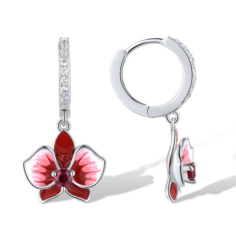 Sterling Silver Earrings Created Ruby,Enamel,White Cubic Zirconia (E317278ENASL925)