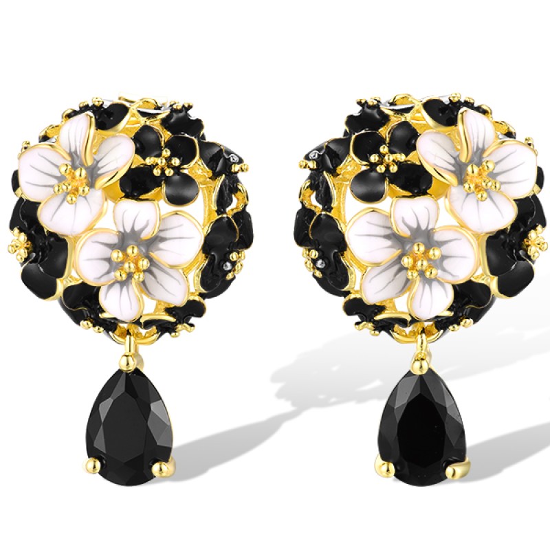 Sterling Silver w/ Yellow Plating Earrings Black spinel,Enamel (E319778ENASY925)