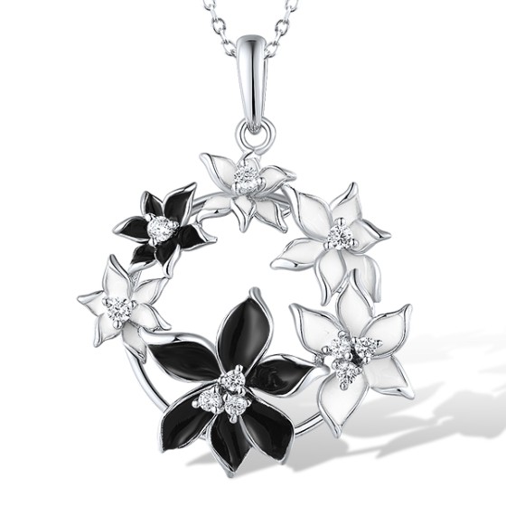 Sterling Silver Pendant Enamel,White Cubic Zirconia without chain (P309681BENA4SL925)