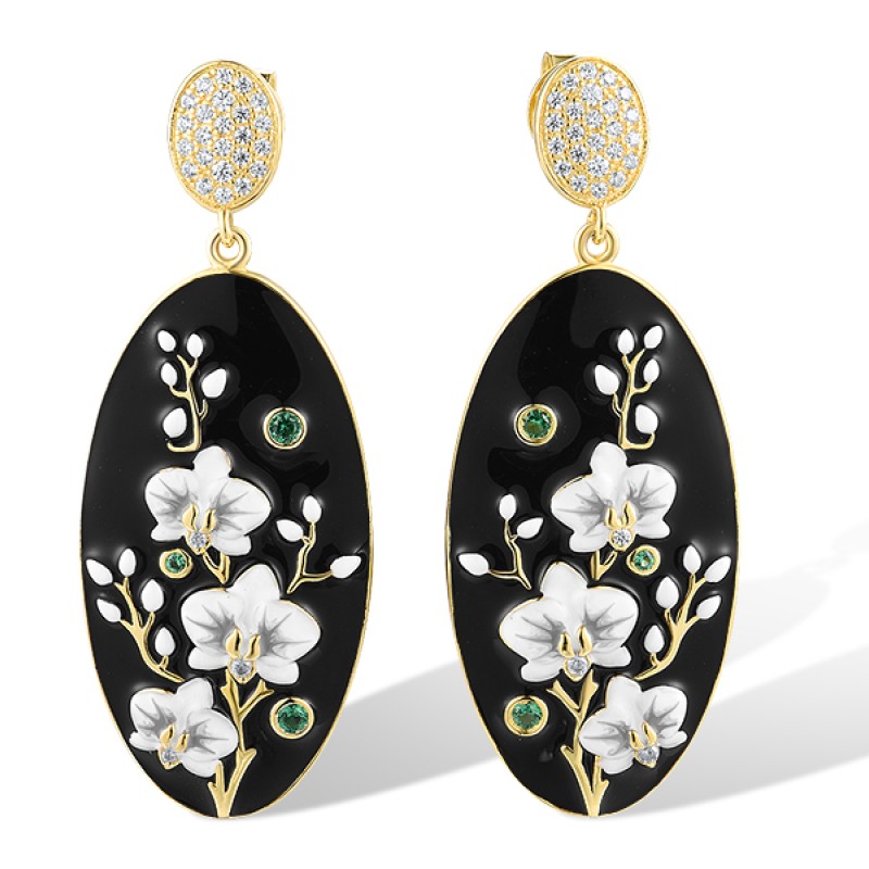 Sterling Silver w/ Yellow Plating Earrings Enamel,Green Spinel,White Cubic Zirconia (E319118ENASY925)
