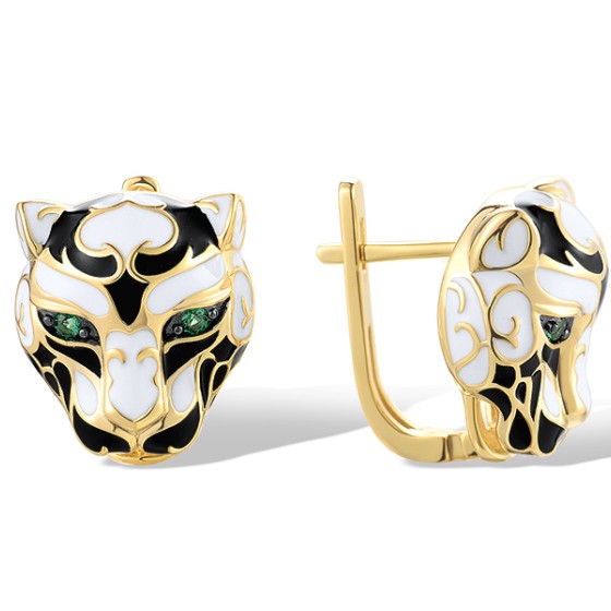 Sterling Silver w/ Yellow Black Plating Earrings Enamel,Green Spinel (E319171ENASC925)