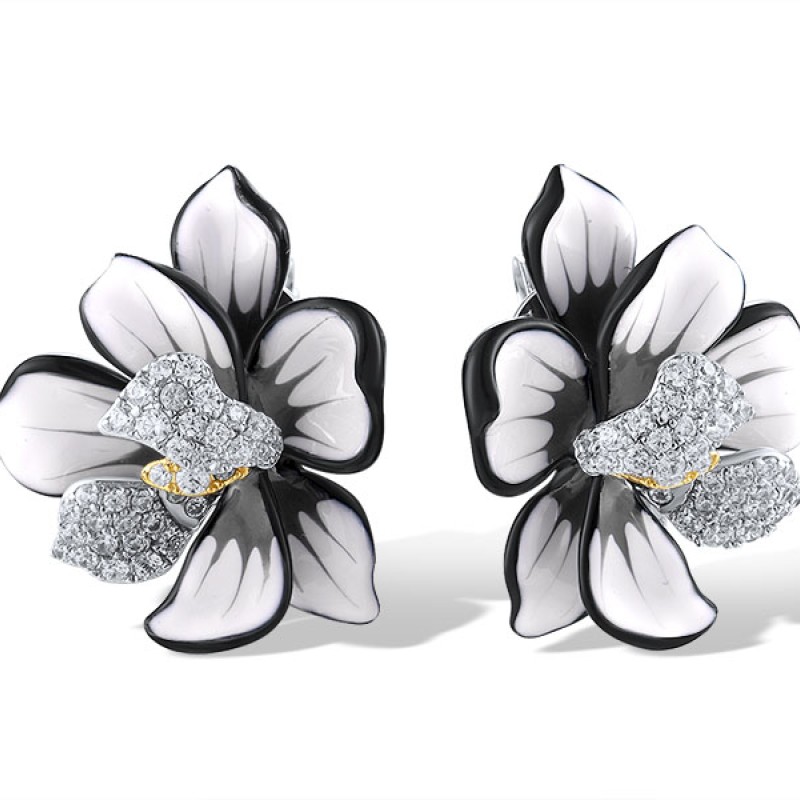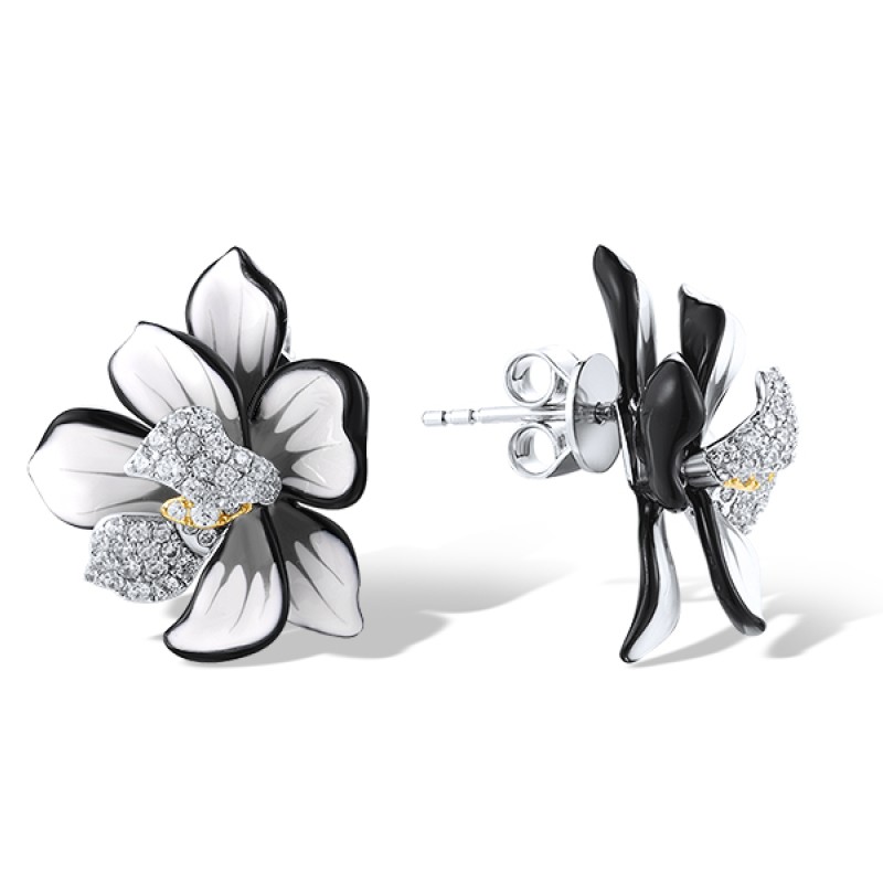 Sterling Silver w/ Ionic Yellow Plating Earrings Enamel,White Cubic Zirconia (E319449ENASP925)