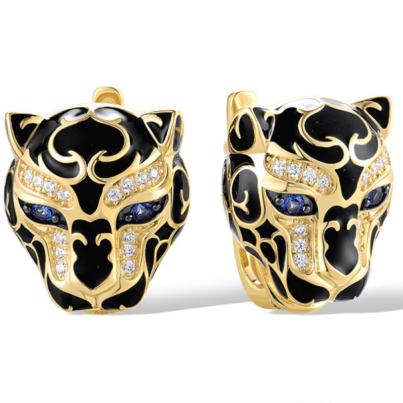 Sterling Silver w/ Yellow Black Plating Earrings Blue Nano Cubic Zirconia,Enamel,White Cubic Zirconia (E319172ENASC925)