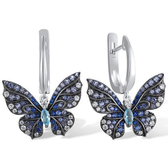 Sterling Silver w/ Black White Plating Earrings Blue Glass,Blue Nano Cubic Zirconia,Blue Spinel,White Cubic Zirconia (E316703MULSK925)