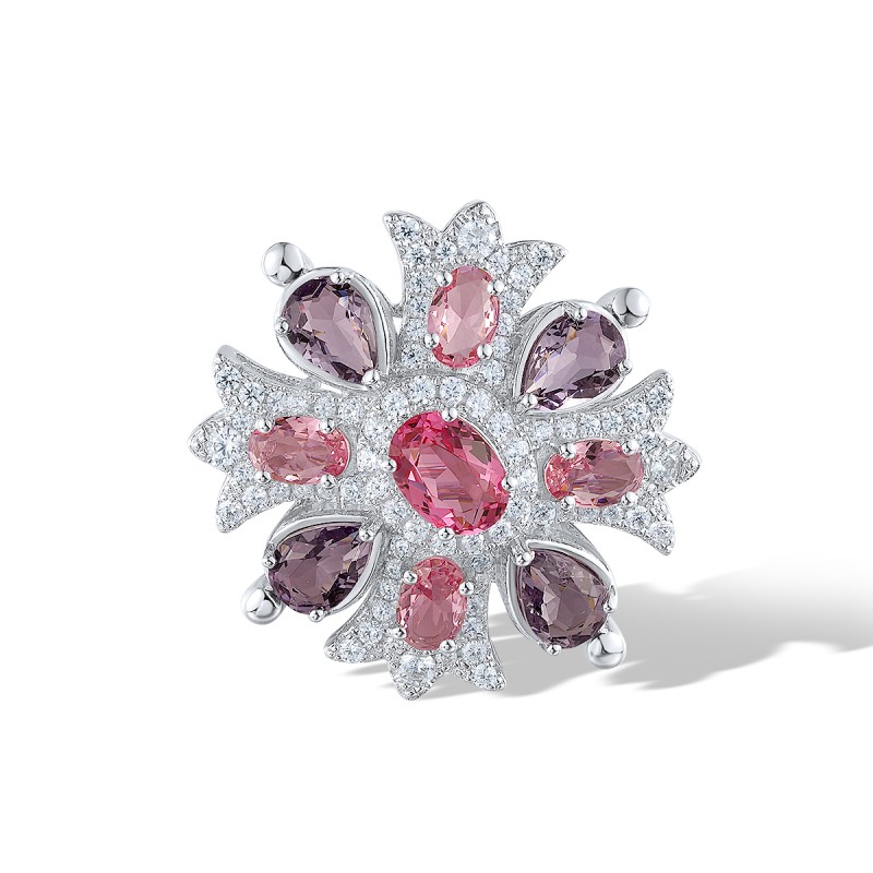 Sterling Silver Brooch Pink Glass,Purple Glass,White Cubic Zirconia (O312410PPGZSL925)