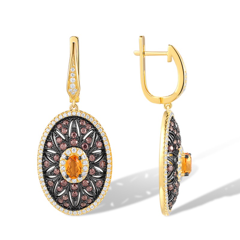 Sterling Silver w/ Yellow Black Plating Earrings Chocolate CZ,White Cubic Zirconia,Yellow Glass (E313658YGHZSC925)